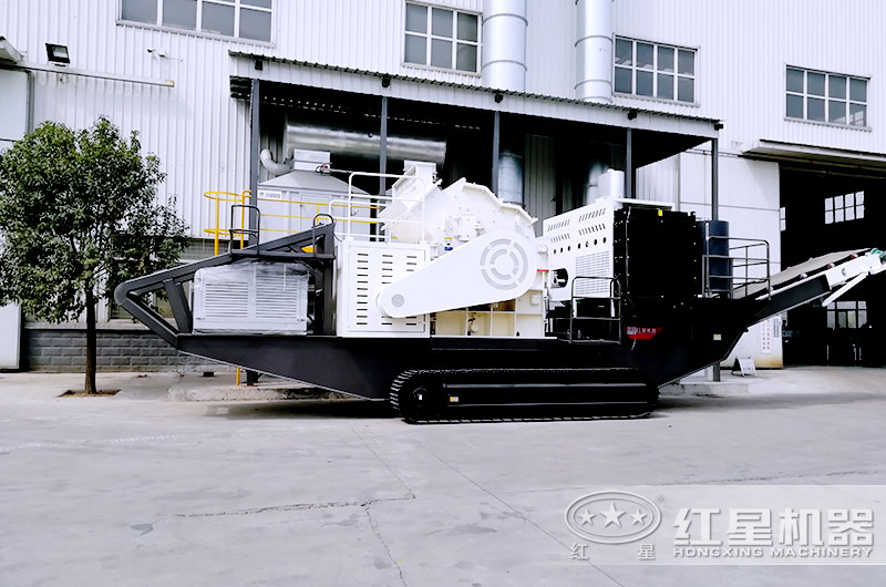 移動履帶碎石機已經開到破碎現(xiàn)場